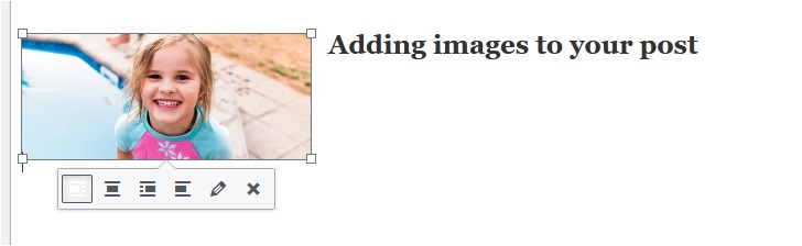 - Now you can resize the image by grabbing the corners and clicking. You can also change the justification of the image by clicking on the 4 alignment buttons below.